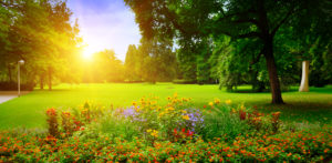 summer park with beautiful flowerbeds